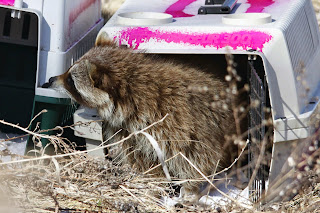 On Saturday April 5th I participated in the release of 4 young Raccoons. From what I know of them, they were born very late last season and orphaned. And the kind people of Hobbitstee were once again willing to help. I photo'd their release of 5 young Red Fox last year, see video here.